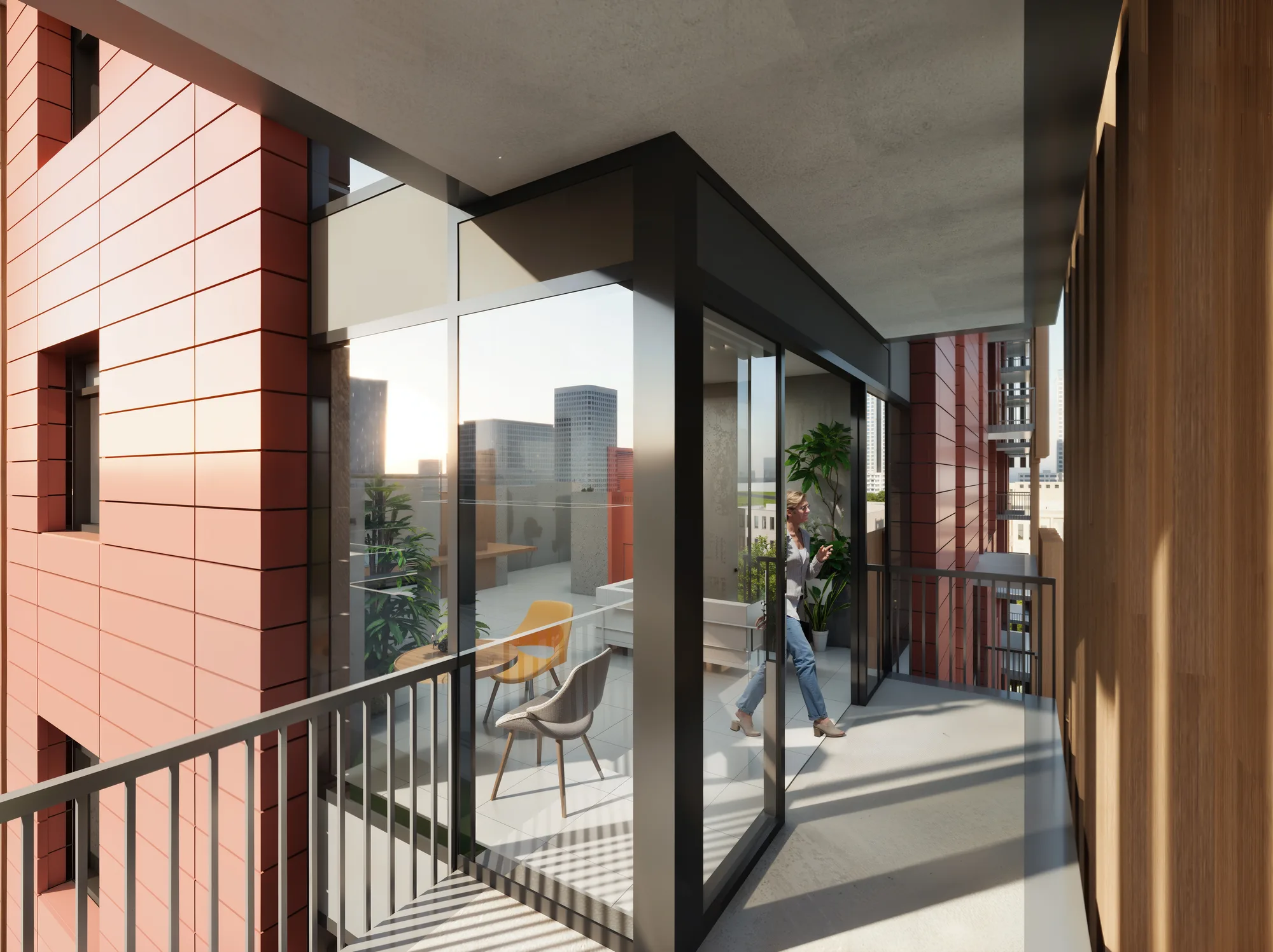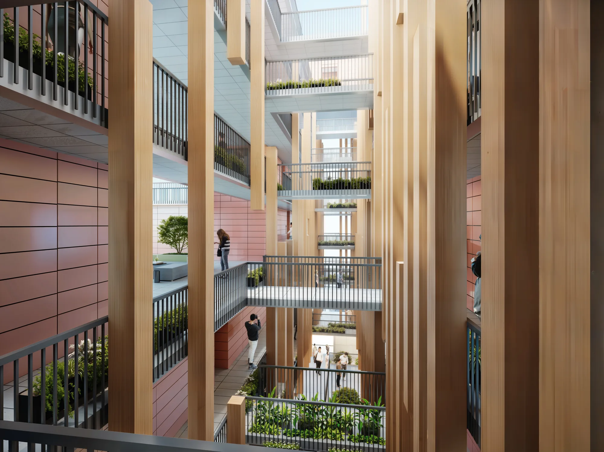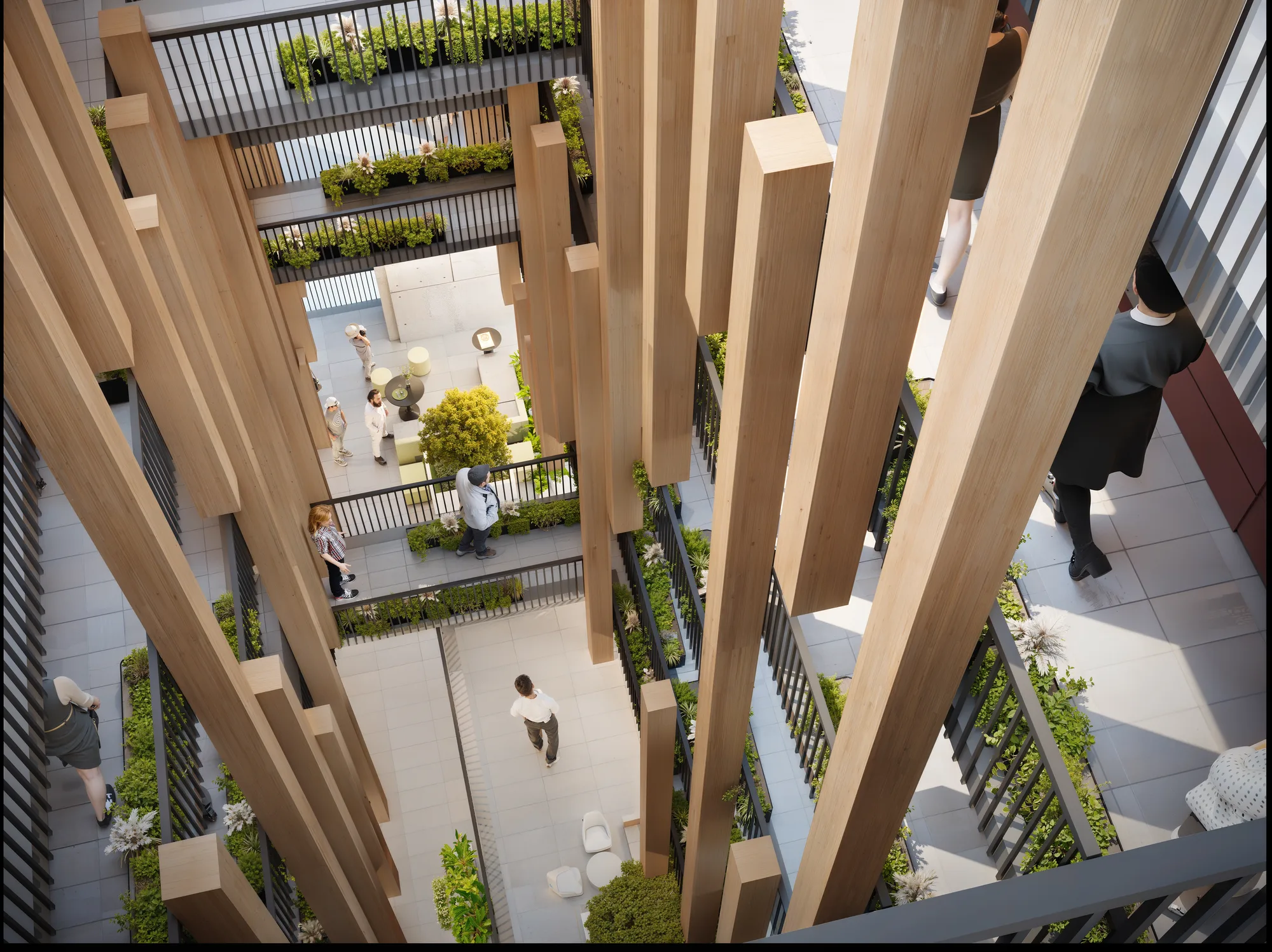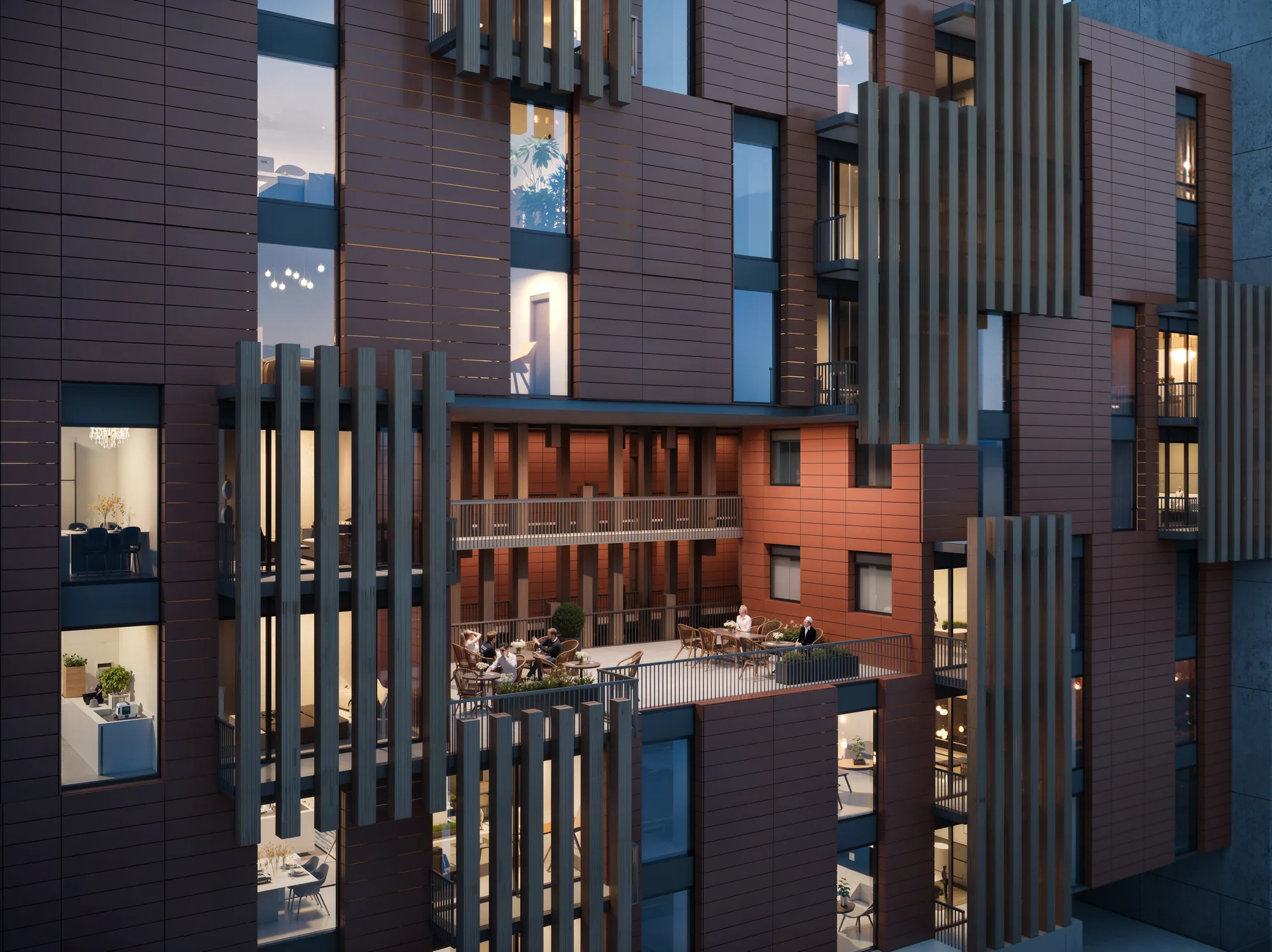 Towers on Glacier is a mid-rise, mixed-use development located in the Grantville area that plays on mass, density, and dynamism. The parcel area for this project is 10,500 square feet with the CC-3-6 zoning designation. This project falls within the “Complete Community Housing Solutions” overlay zone, which allows an additional F.A.R. of 4.0.